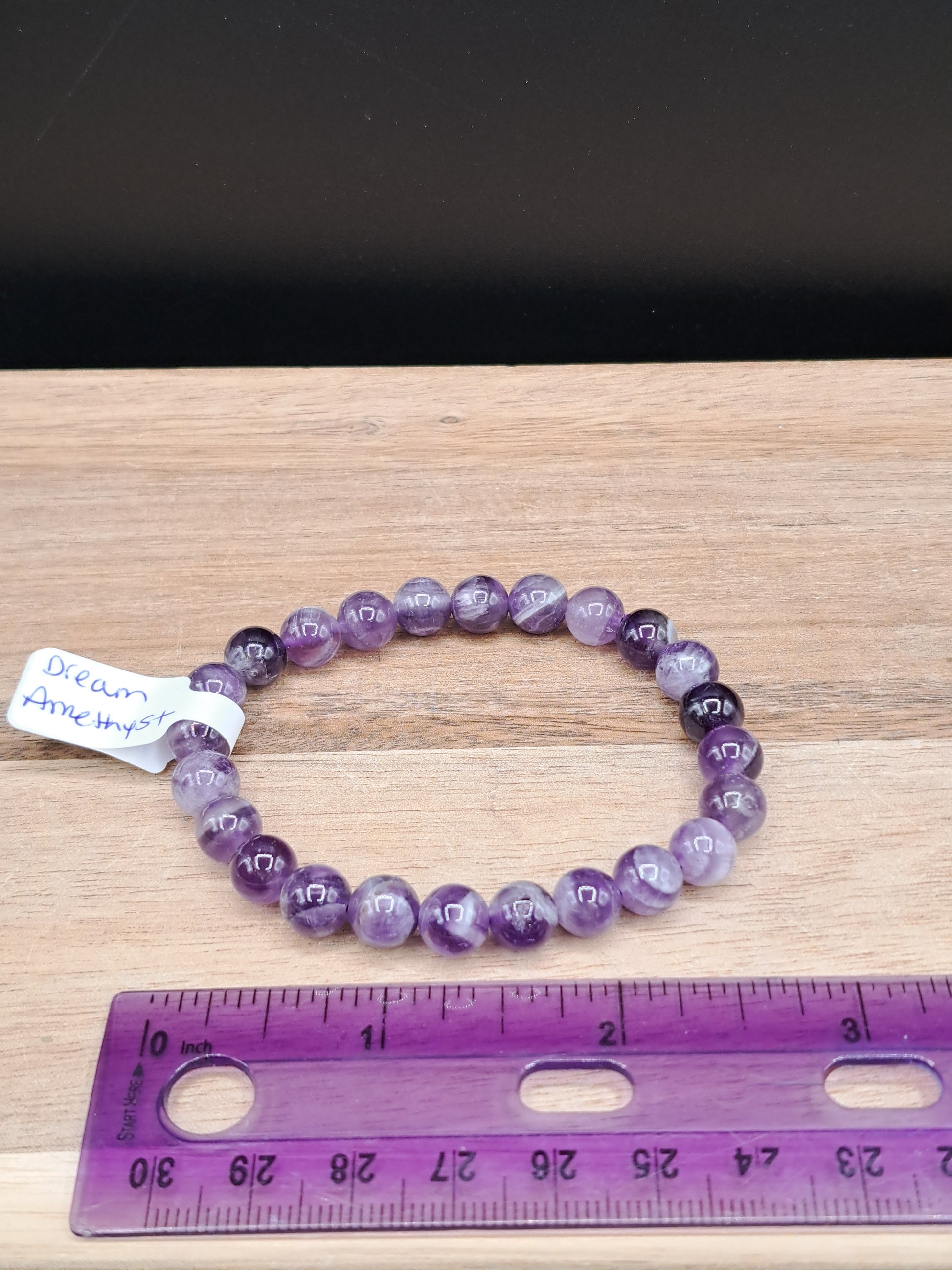 Chevron Amethyst is also called Dream Amethyst, and that is when there is white zizag banding in the stone. Bead size is approximate. Stones are natural crystals, slight variations are possible. Price is for 1 individual bracelet.