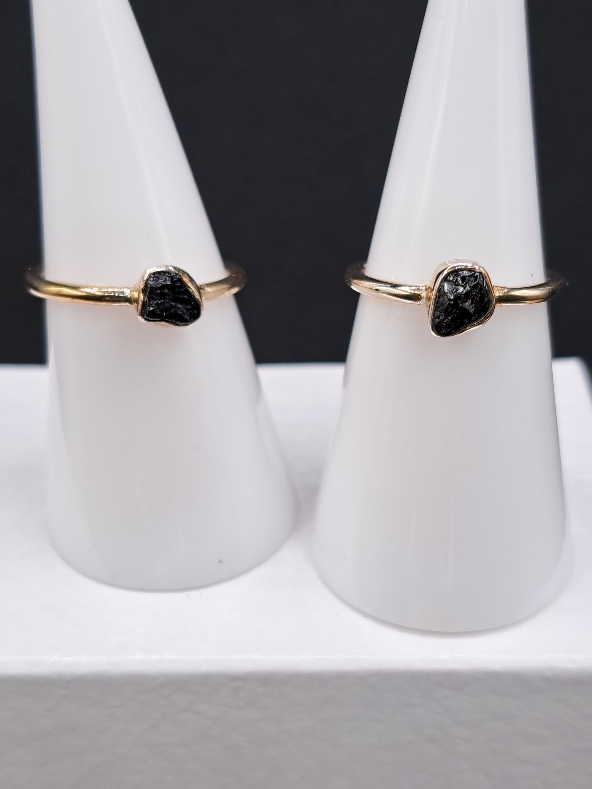 Black tourmaline nuggets are set in a thick silver collar on a narrow stackable .925 silver band. Variations in stone shape. Choose size.