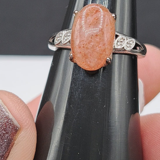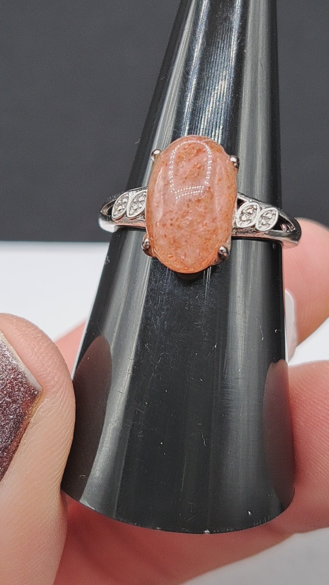 Shimmery domed Mozambique Sunstone set in a .925 silver collar and band. Style varies with size.