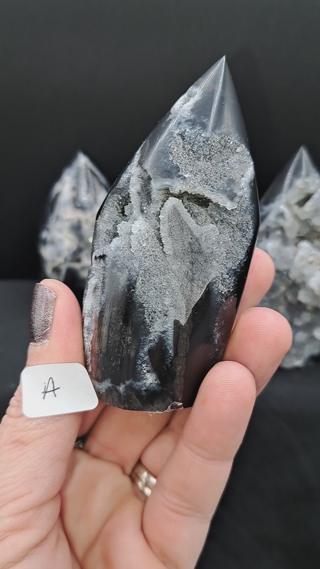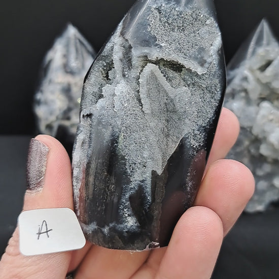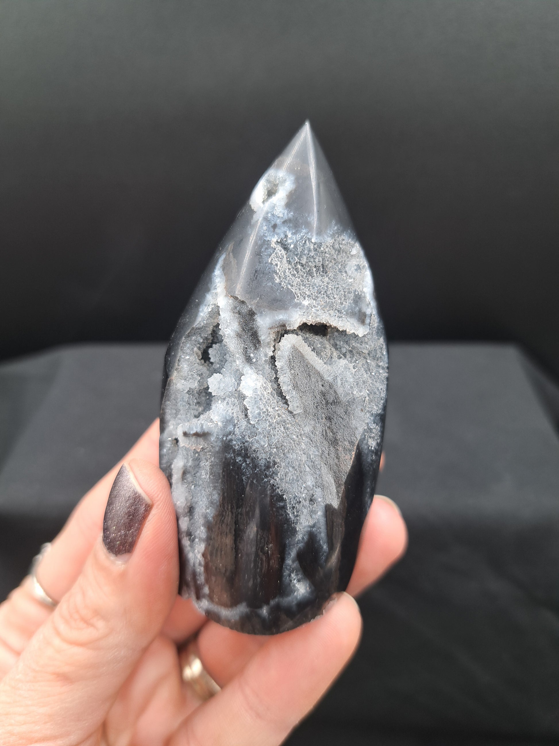 Commonly mis-named as “sphalerite”, it’s actually a brecciated combination of possible materials including limestone, calcite, jasper, chalcedony and sparkly drusy quartz. (That's a mouthful!) With help from other members of the crystal community, I coined the term "Harmony Quartz" to use instead of the incorrect label. From China.