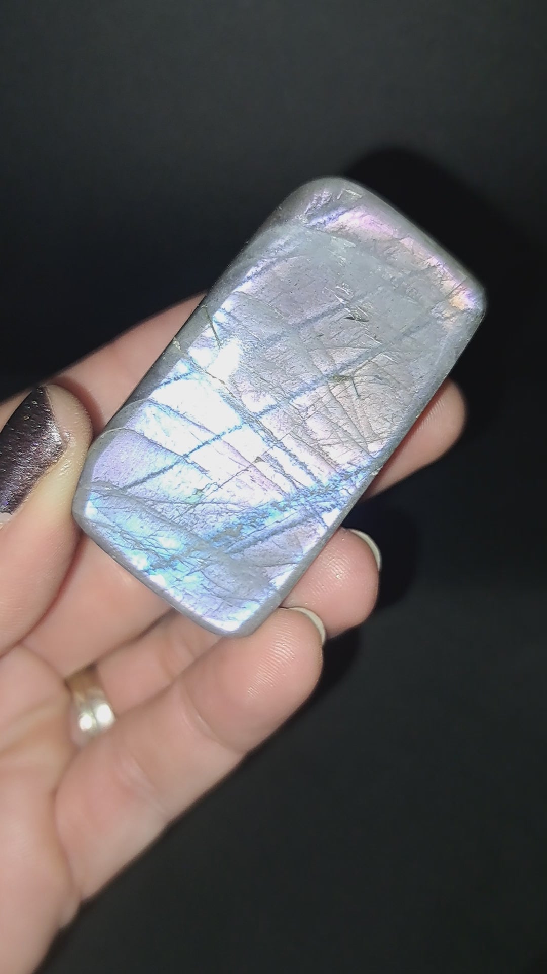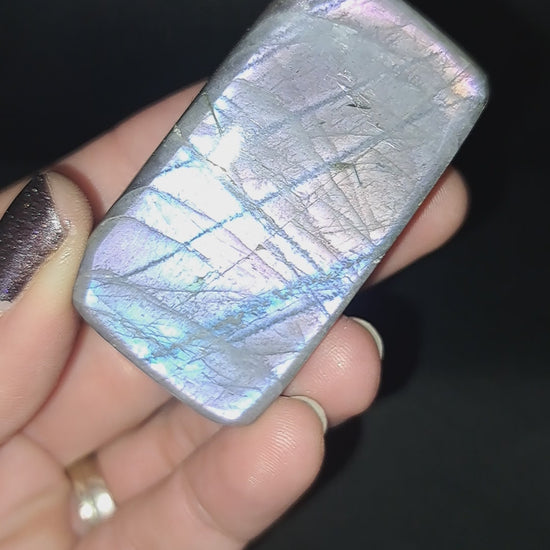Full face purple to pink flash on the front. Minimal flash on the back. Size is 2.25" wide, 1" thick, and 1.25" tall. From Madagascar.
