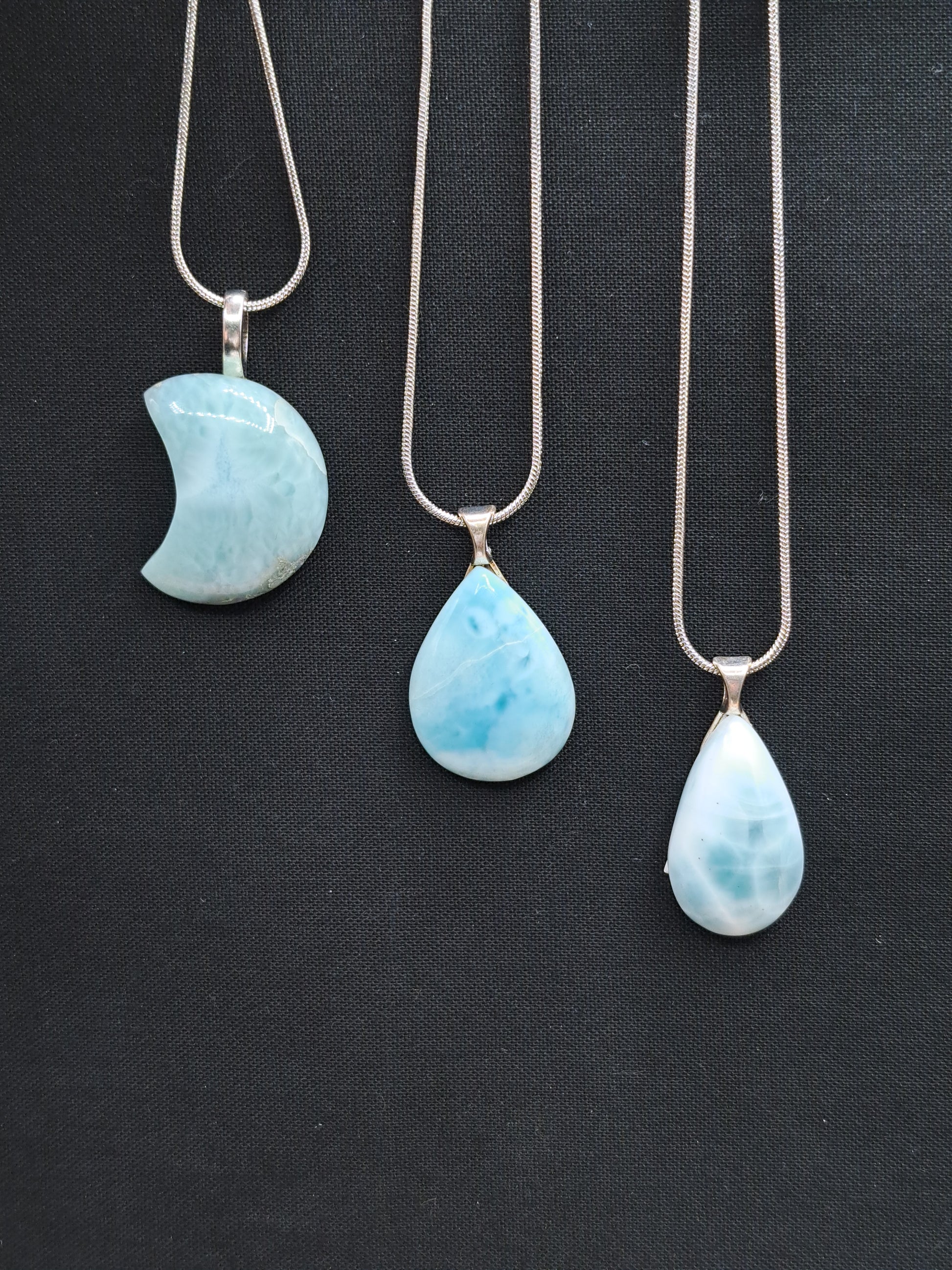 Pick your favorite! Cabochon attached to matching bail with reliable E6000 adhesive by Rachel. From the Dominican Republic. Comes with 18" matching silver-plated chain. Pendant size approximately 1.25"-1.5"