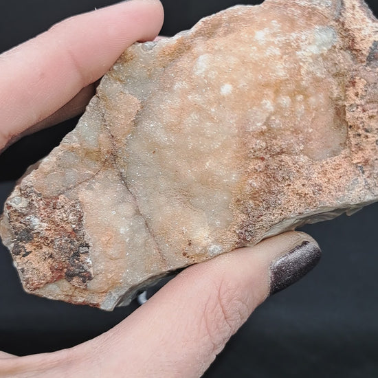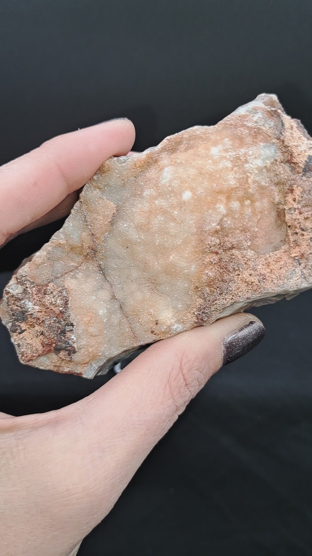 Drusy and banded! Beautiful raw Mexican Crazy Lace Agate. Comes with acrylic display easel. Approx 4” from Mexico.