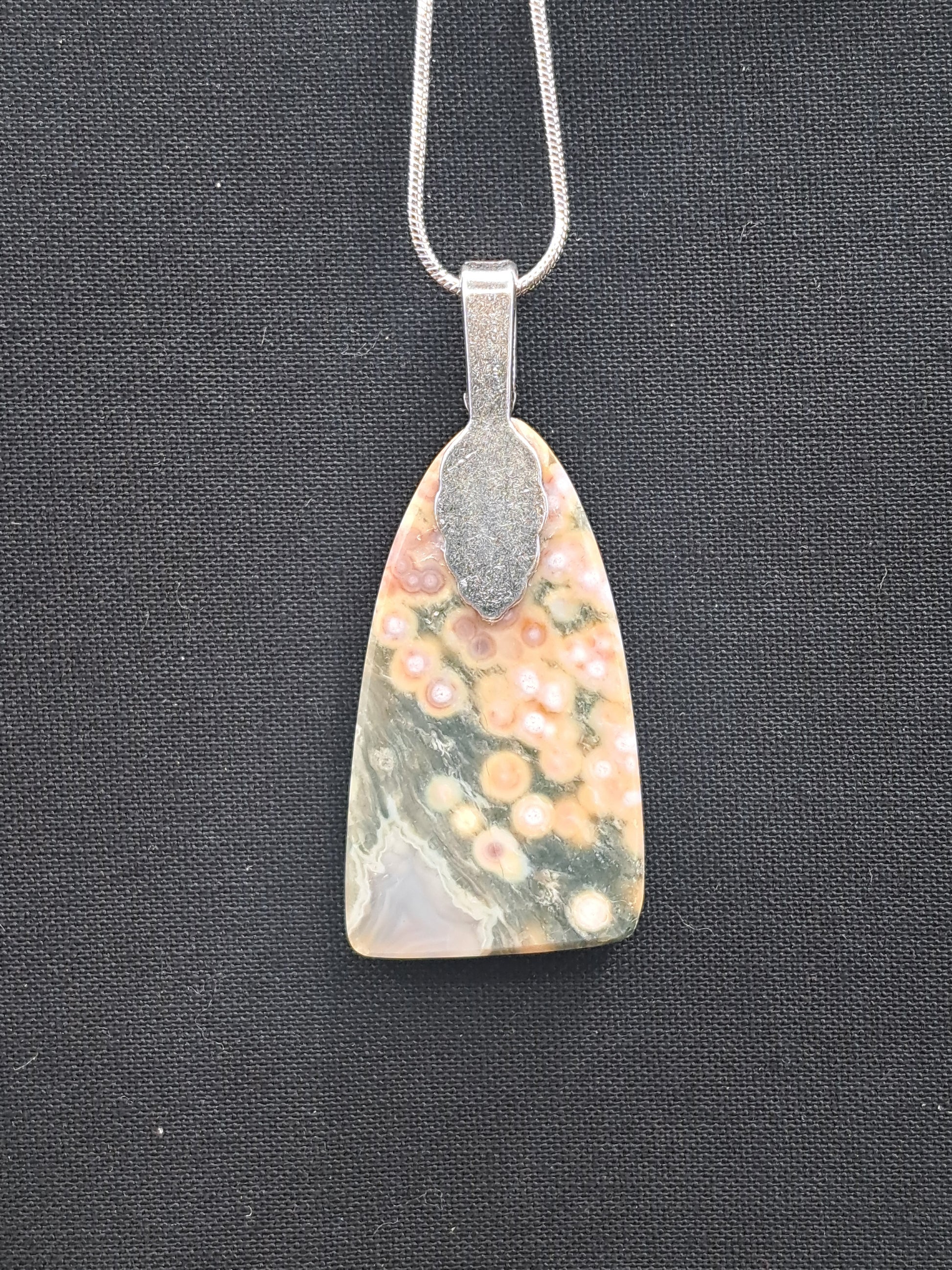 Ocean Jasper Old Stock Vein 1-2 Crystal Necklace