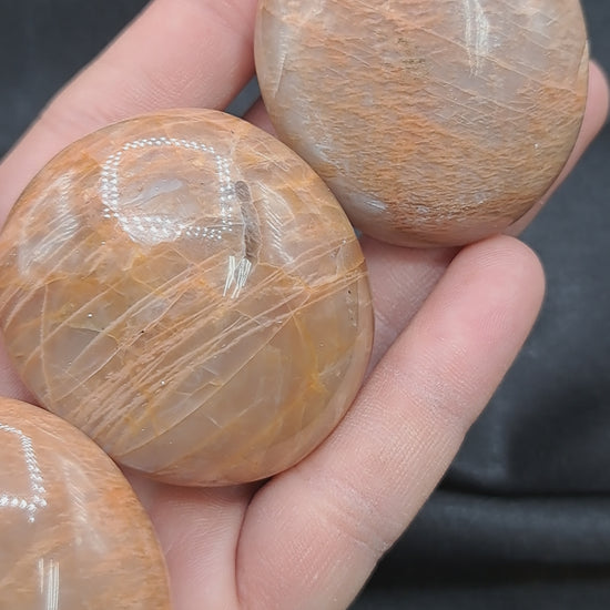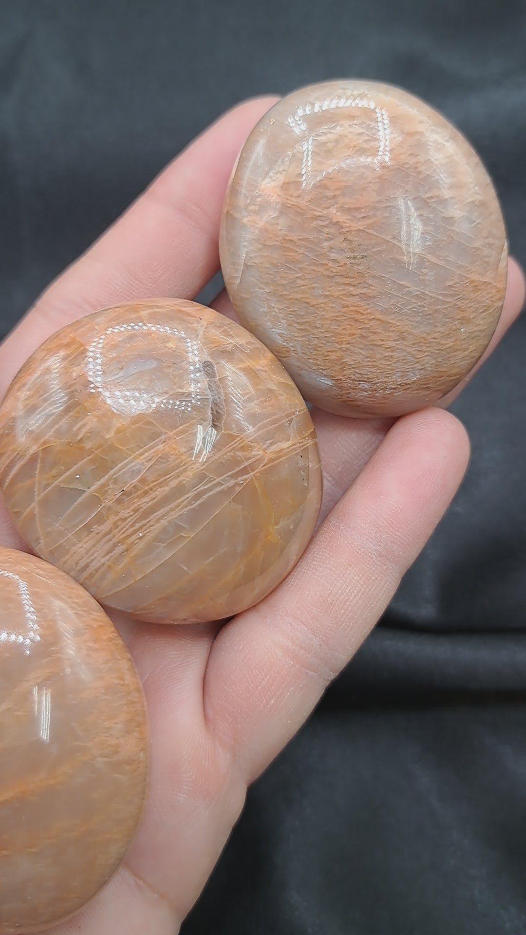 Shimmery peach moonstone! Photo is representative of batch, will be intuitively chosen. All are approx. 2" long. Small are thinner, Large are more chunky. Choose which size is best for you. From Madagascar.