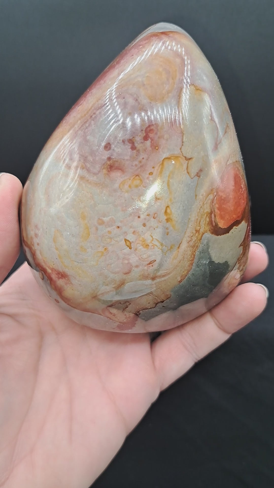 Over 2 lb. freeform full of beautiful, swirled colors. Approx. 4.5" tall x 3.5" wide. From Madagascar.
