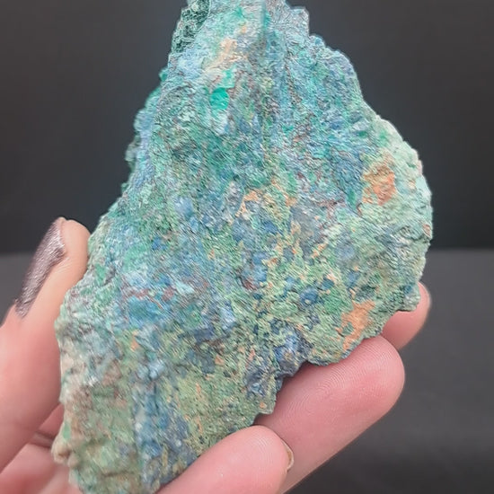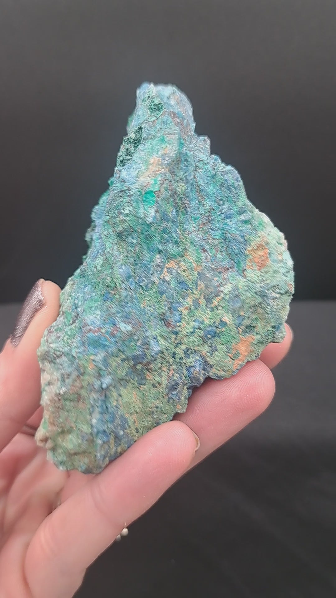 Beautiful mix of blues, teal, and aqua. Self stands. Approx 4” long. From Kaokoveld, Namibia.