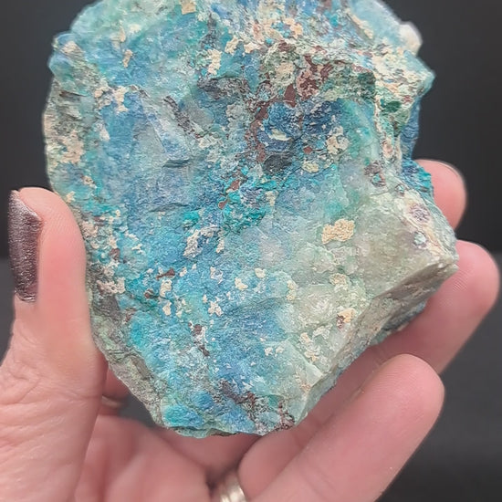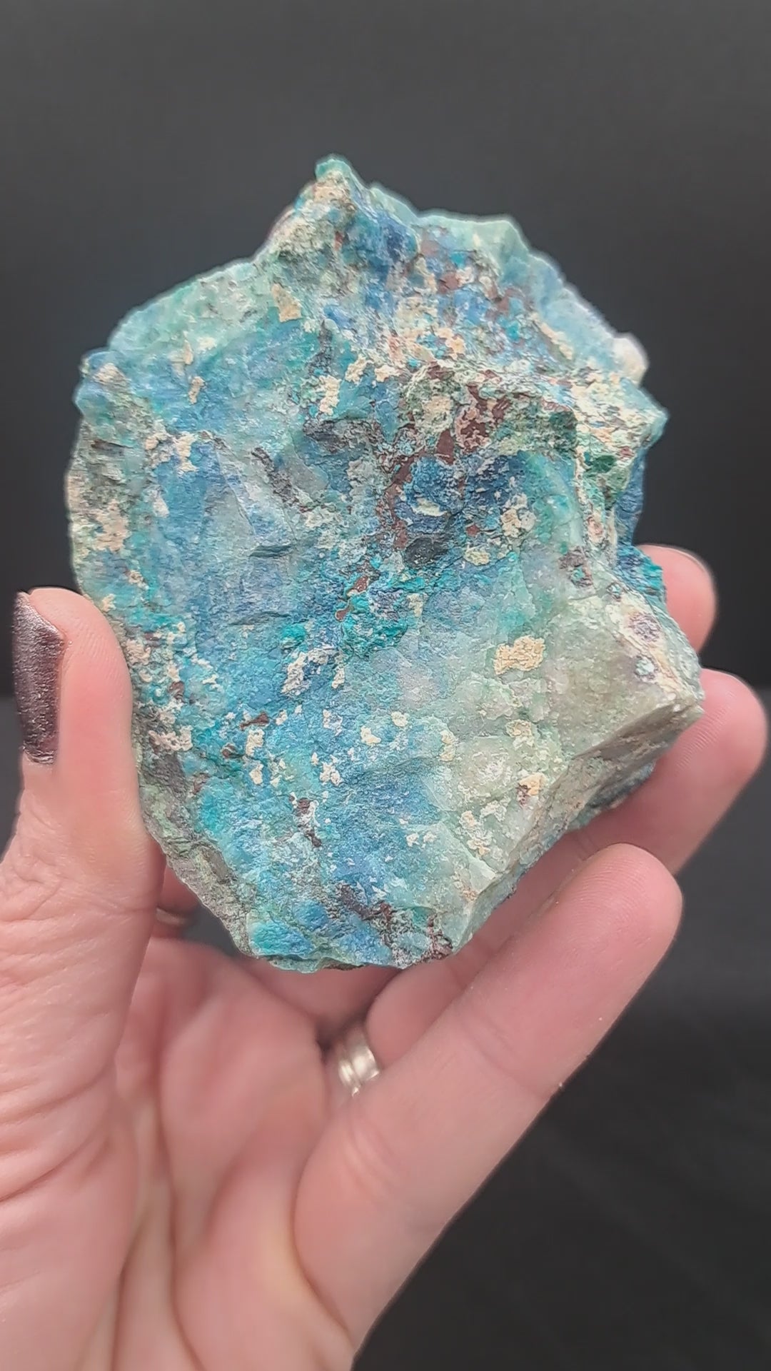Beautiful mix of blues, teal, and aqua. Self stands. Approx 3.5” long. From Kaokoveld, Namibia.