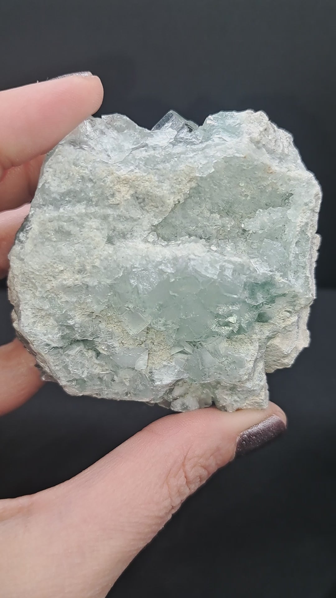 Stunning super clear and gemmy cubic fluorite in a soft mint green. Piece is almost solid fluorite, virtually no matrix. UV reaction shown with 365nm flashlight. Approx. size is 3" x 2.5". Looks great with a specimen display stand, sold separately. From Xianghualing, Hunan, China.