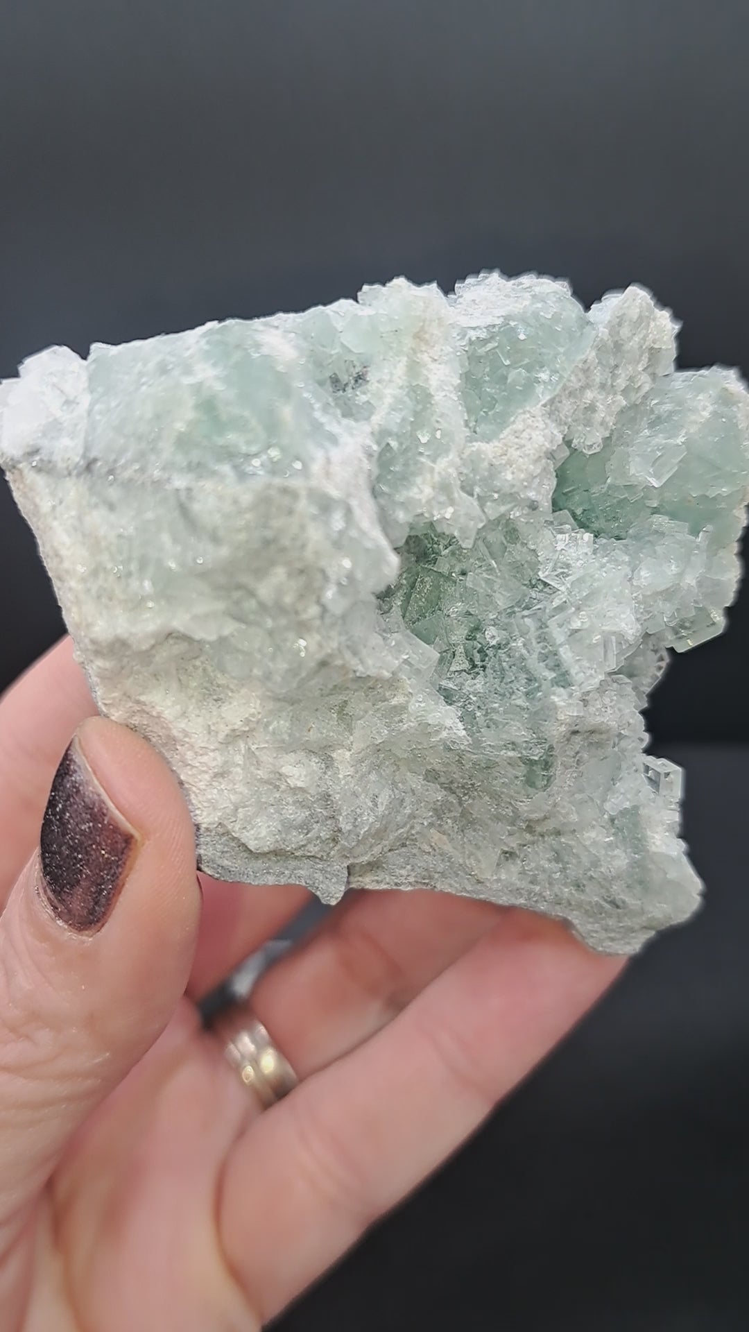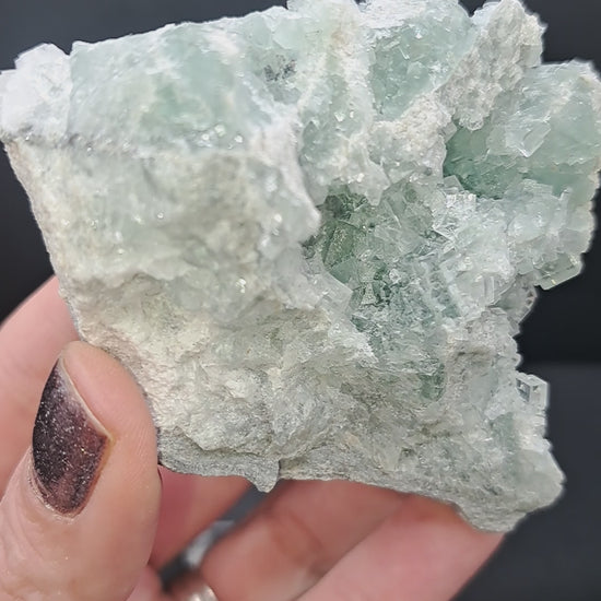 Stunning super clear and gemmy cubic fluorite in a soft mint green. Piece is almost solid fluorite, virtually no matrix. UV reaction shown with 365nm flashlight. Approx. size is 3.25" x 2.75". Looks great with a specimen display stand, sold separately. From Xianghualing, Hunan, China.